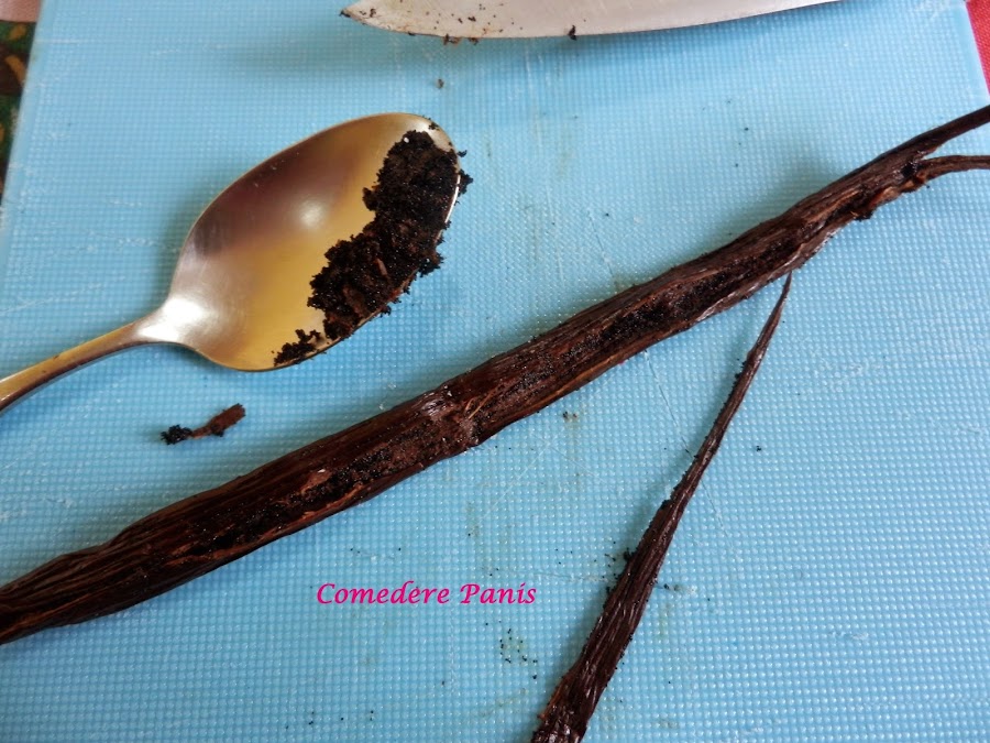 Comenzamos sacando las semillas de la vaina de vainilla.