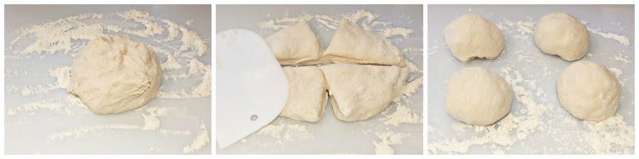 Divide la masa en 4 partes iguales. Cada porción deberá pesar unos 80 gr.
