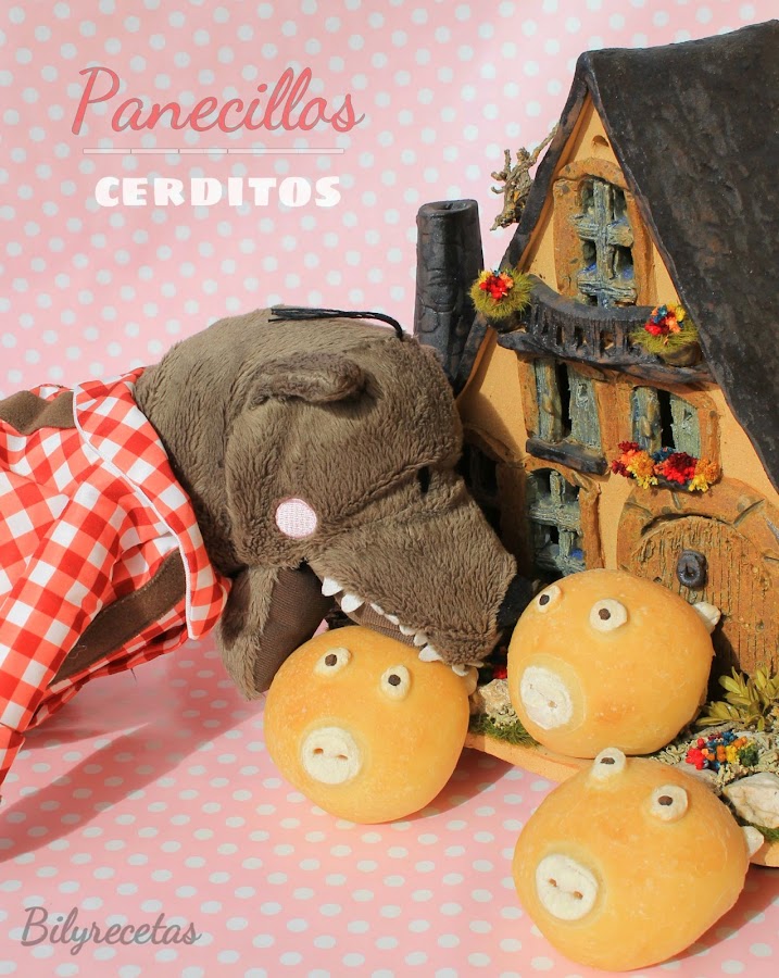 Este mes empiezo una nueva aventura. Un reto que ayudara a más de uno en los preparativos de una fiesta infantil temática. Se trata del proyecto "Una galleta, un cuento" que organiza Patricia de Pattyscake. Cada mes un anfitrión elije un cuento clásico y todos los participantes deben de realizar su idea pensando en una fiesta infantil. Este mes Elena de Recetas con mimo propuso el fantástico cuento del Lobo y los tres cerditos. A mí me encanto ya que es uno de los favoritos de mis hijos. He optado por una receta salada, unos panecillos de leche para bocadillo ya que imaginaba que habría numerosas propuestas dulces. Además un sándwich/bocadillo viene de fábula para las meriendas infantiles. No es una idea original pero mis hijos se han vuelto locos realizando la receta así que por lo menos les han resultado atractivos y esto ya cumplía con lo que yo necesitaba. Os dejo con la receta