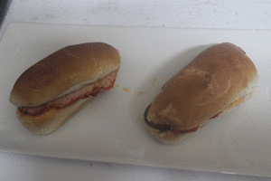 Ayer fuimos a comprar al supermercado y encontramos unas bolsitas con panecillos de la textura del pan de hamburguesa, pero alargados y se nos ocurrió que irían de muerte para unos filetes de lomo adobado que teníamos en la nevera.