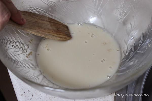 Disolvemos la levadura en una poquita agua templada y la reservamos.