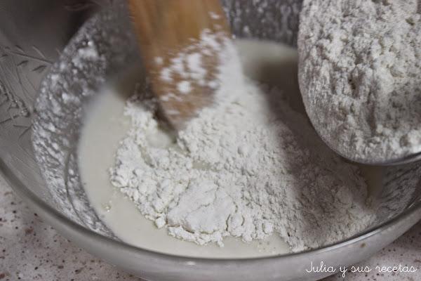 Le añadimos la harina y mezclamos bien cuidando que no queden grumos.