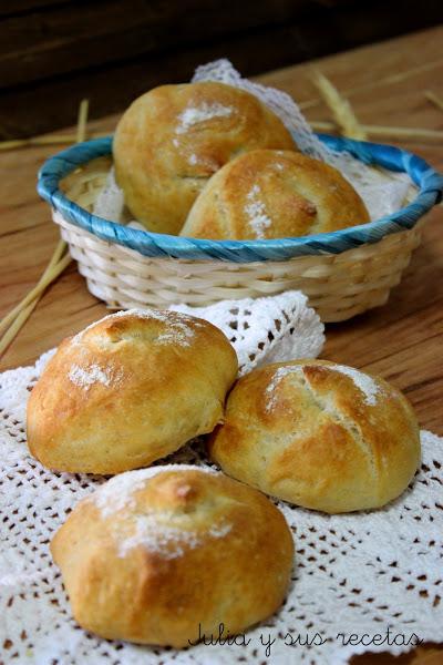 Esta vez me he liado la manta a la cabeza y me he atrevido con estos panecillos con poolish de yogurt, no me preguntéis que es porque no lo se, creo que es una clase de masa madre que ayuda al pan a levar mejor... la cuestión es que yo he seguido sus pasos y .. oye!! no me han quedado mal...!! ricos, estaban, con un poquito jamón serrano y aceite de oliva, son un bocadito riquísimo!! y mis hijos se los han comido rellenos de Nocilla y con chocolate... vamos, se han puesto las botas!!
