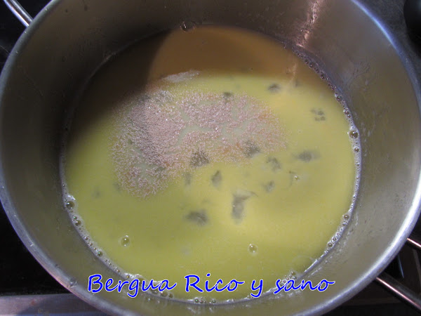 1. Calentamos la harina en una cazuela al fuego; sin quemarla ni hervirla, solo para que se vaya fundiendo.
