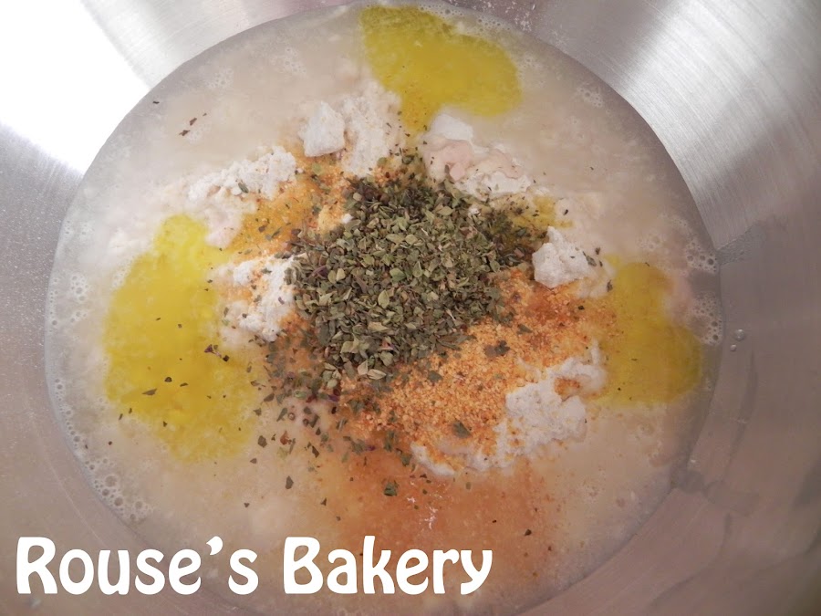 Añadimos la sal, el ajo en polvo, y el orégano y comenzamos a amasar.