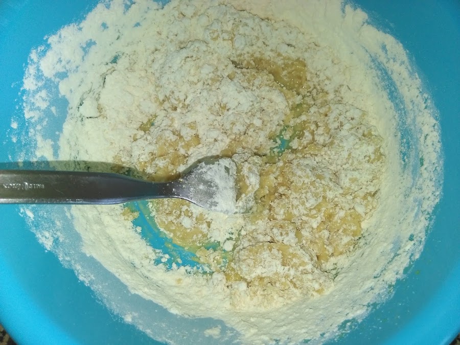 A continuación echamos la harina (con la levadura incorporada) y mezclamos