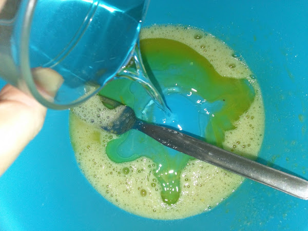 Primero batimos el huevo con el azúcar, luego añadimos el aceite y el anís