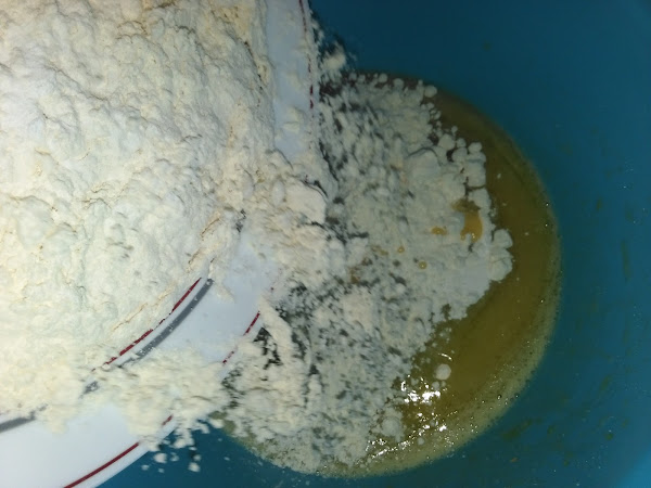 El aceite que utilicé tanto para la masa como para la masa (oliva suave), primero tamizamos la levadura y la ponemos junto con la harina