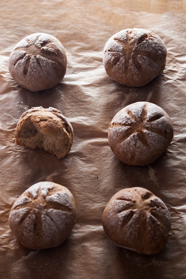 Veremos que nuestros panecillos acaban con un bonito color y un aspecto rústico que a mi me encanta en el pan.