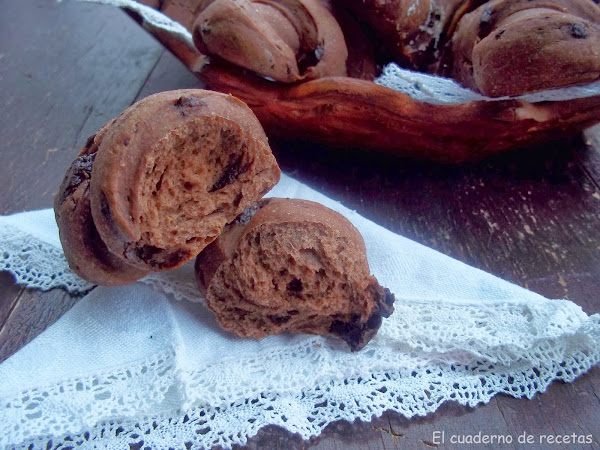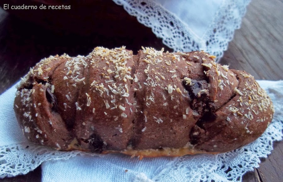 Elegimos el programa de masas, que dura quince minutos, cuando le quede dos minutos para finalizar, añadimos el chocolate troceado.