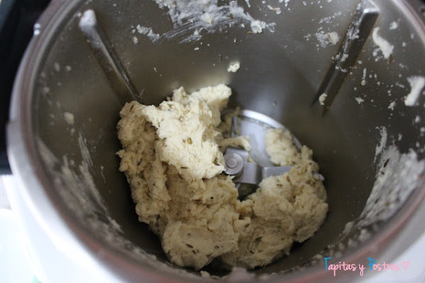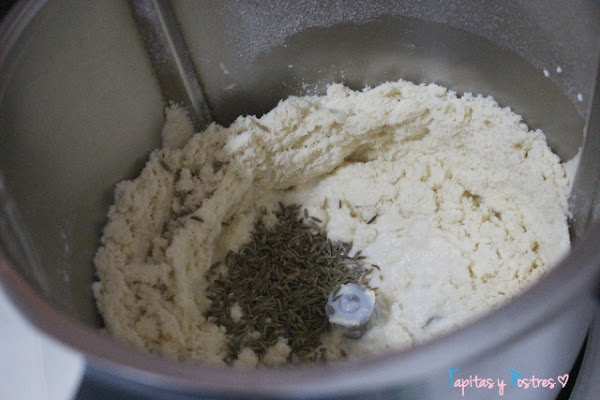 A continuación agregamos la leche y el comino y amasamos 20 segundo a velocidad 6.