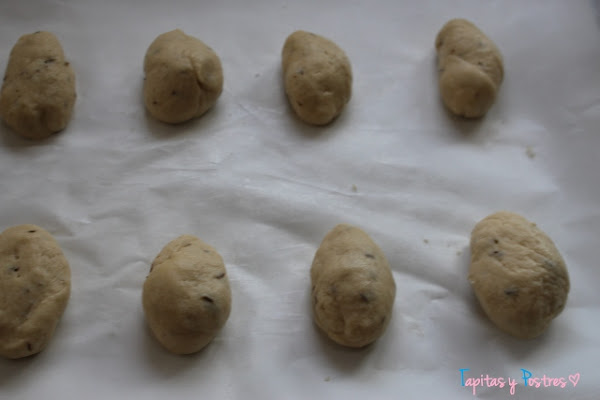 Damos forma alargada a cada porción. Los ponemos en la bandeja den horno. Salen unos 15 más o menos. Los horneamos unos 15 minutos a 190º con calor arriba y abajo.