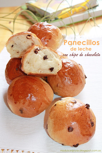 Como me gustan mucho los panecillos de leche, he decidido preparar una versión de estos panecillos con chips de chocolate y presentarlos en forma redonda en vez de alargada, como si fueran unos bollos, ya que para mi es más fácil darle la forma redonda que la alargada.