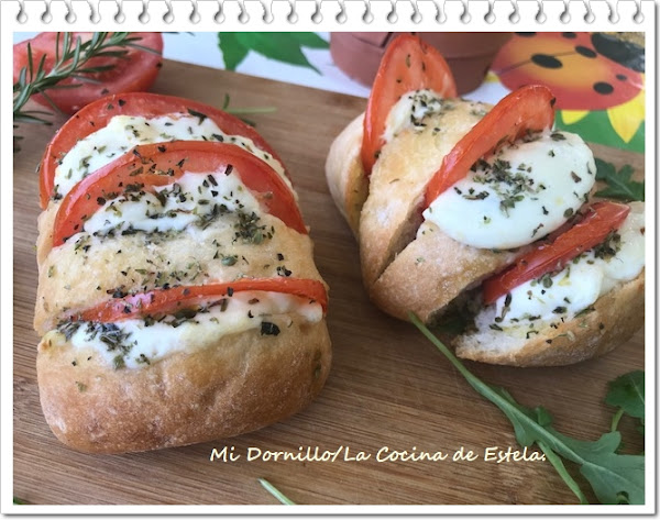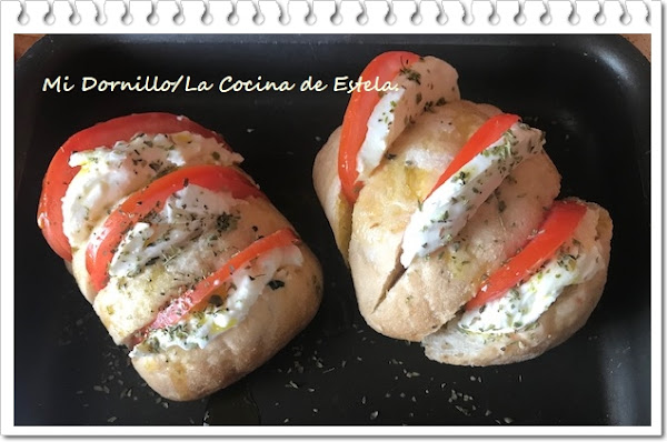 Colocamos los panecillos en una bandeja de horno y le ponemos por encima un chorrito de aceite y un poco mas de orégano. Meter en el horno 10 minutos, hasta que veamos que la mozzarela se ha derretido y el tomate esta doradito. Dejamos en el horno hasta el momento de servir. Servimos calientes.