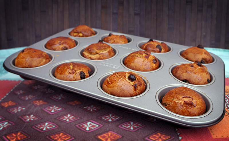 El horno precalentado a 220ºC, se pincelan los bollitos con un poco de huevo batido y se introducen en el horno por lo menos 30 minutos, hasta que estén doraditos.