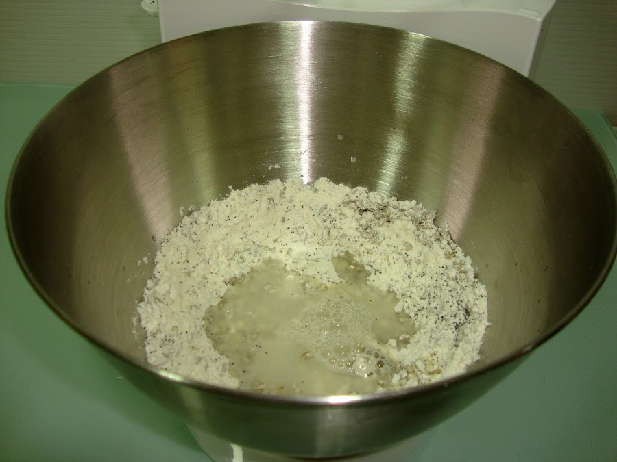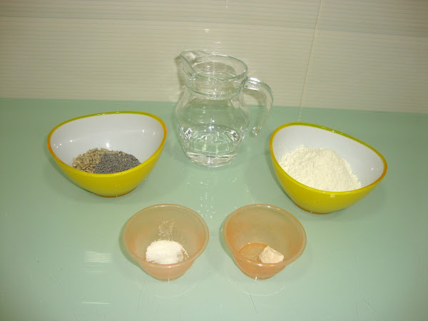 Tamizamos en un bol la harina, la sal, las pipas, las semillas y el resto de agua y mezclamos hasta conseguir una masa homogénea.