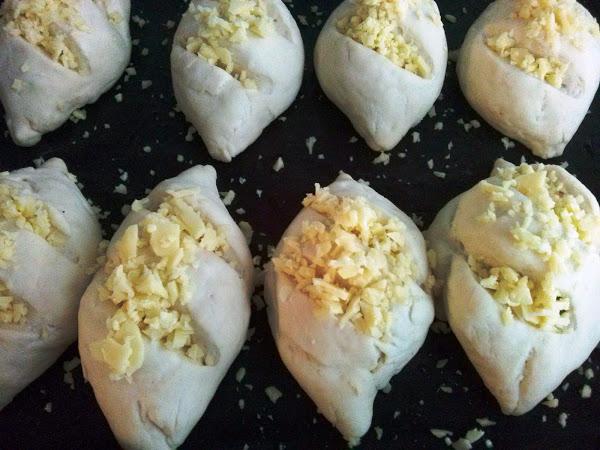 Cuando hayan levado pon el queso rallado por encima y hornea a 180º, hasta que estén dorados.