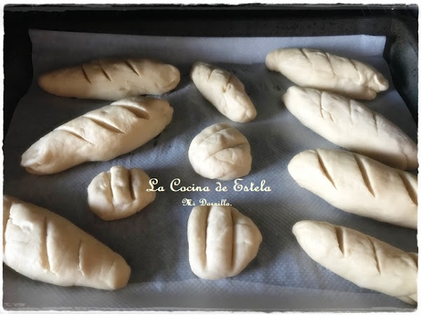 Ponemos los panecillos sobre la bandeja de horno, forrada de papel de hornear, *ponerlo separaditos* que después suben mucho. Hacer unos cortes a los panecillos.