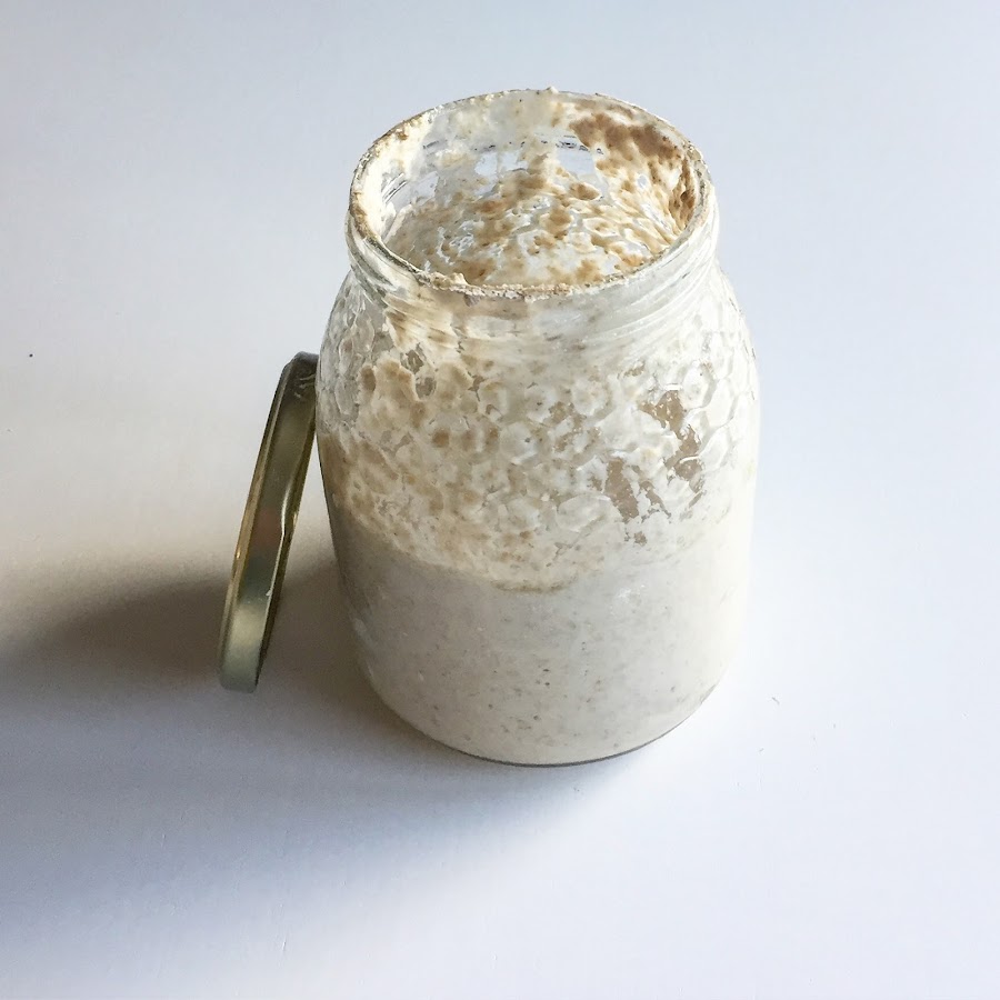 Paciencia, paciencia y paciencia. Cualquier receta con masa madre lleva tiempo, !!!pongamos un par de dias !!!!! Esta belleza está recién sacada de la never y necesita crecer hasta llegar al borde para poder ser usada.