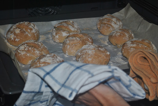Si queréis que la corteza quede crujiente, cuando acabe el horneado y hayáis apagado el horno, dejad que los panecillos reposen en el interior 20 minutos con la puerta entreabierta. Si los queréis más blanditos, sacarlos y ponerlos a enfriar sobre una rejilla.