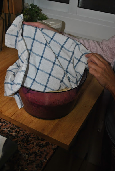 Ahora la dejamos reposar 5 minutos tapada con un paño limpio. Que el paño toque la masa para que después no nos salga costra.