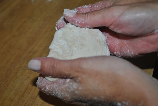 Ahora con cuidado damos la vuelta a la masa y con las manos enharinadas, vamos cogiendo pequeñas porciones y formando nuestros panecillos.