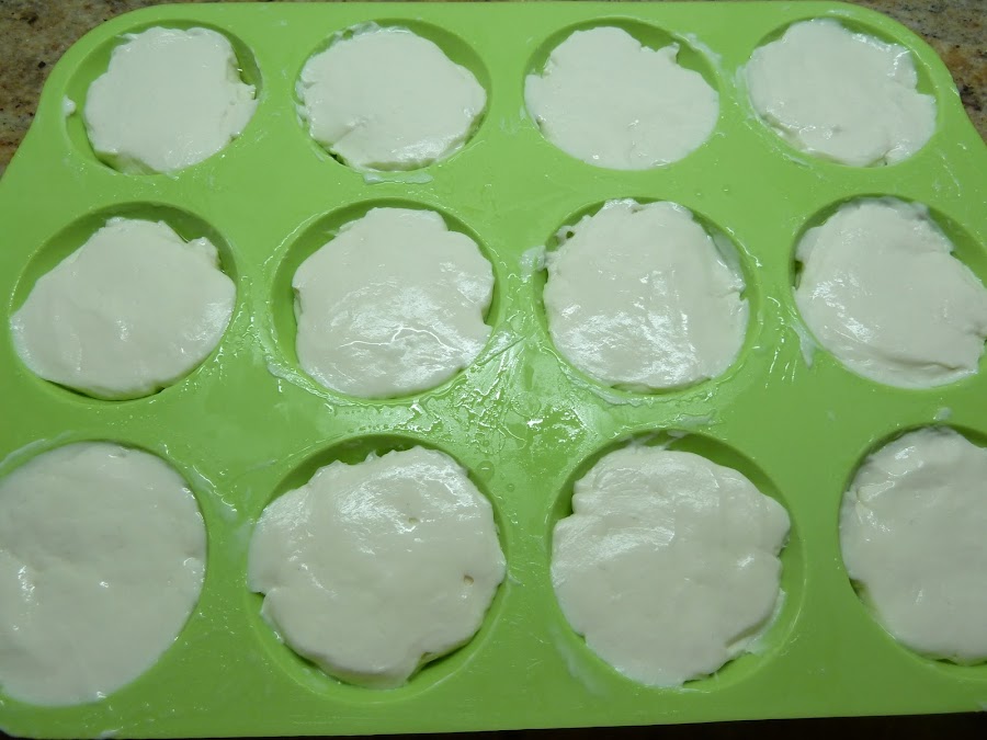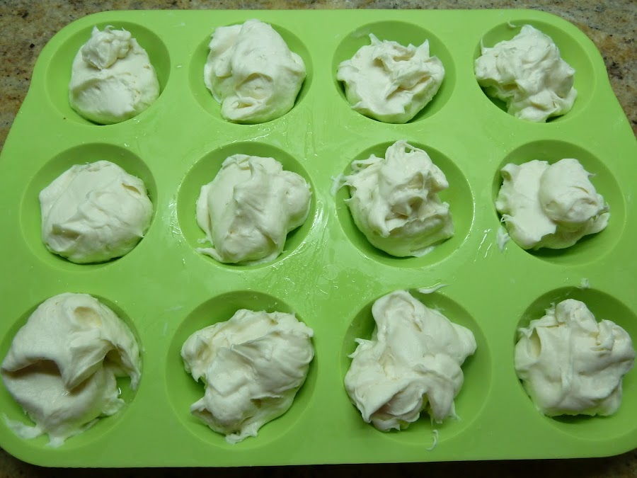 6) Como la masa queda muy pegajosa, utilizar una cuchara para coger porciones de unos 40g (unos 3/4 de cucharada colmada). Se pueden poner en moldes pequeños de muffins (mejor de silicona para el posterior desmoldado) o poniendo la porción de masa sobre la bandeja del horno y peinarla con los dedos humedecidos y con paciencia. De aquí a congelar u hornear directamente.