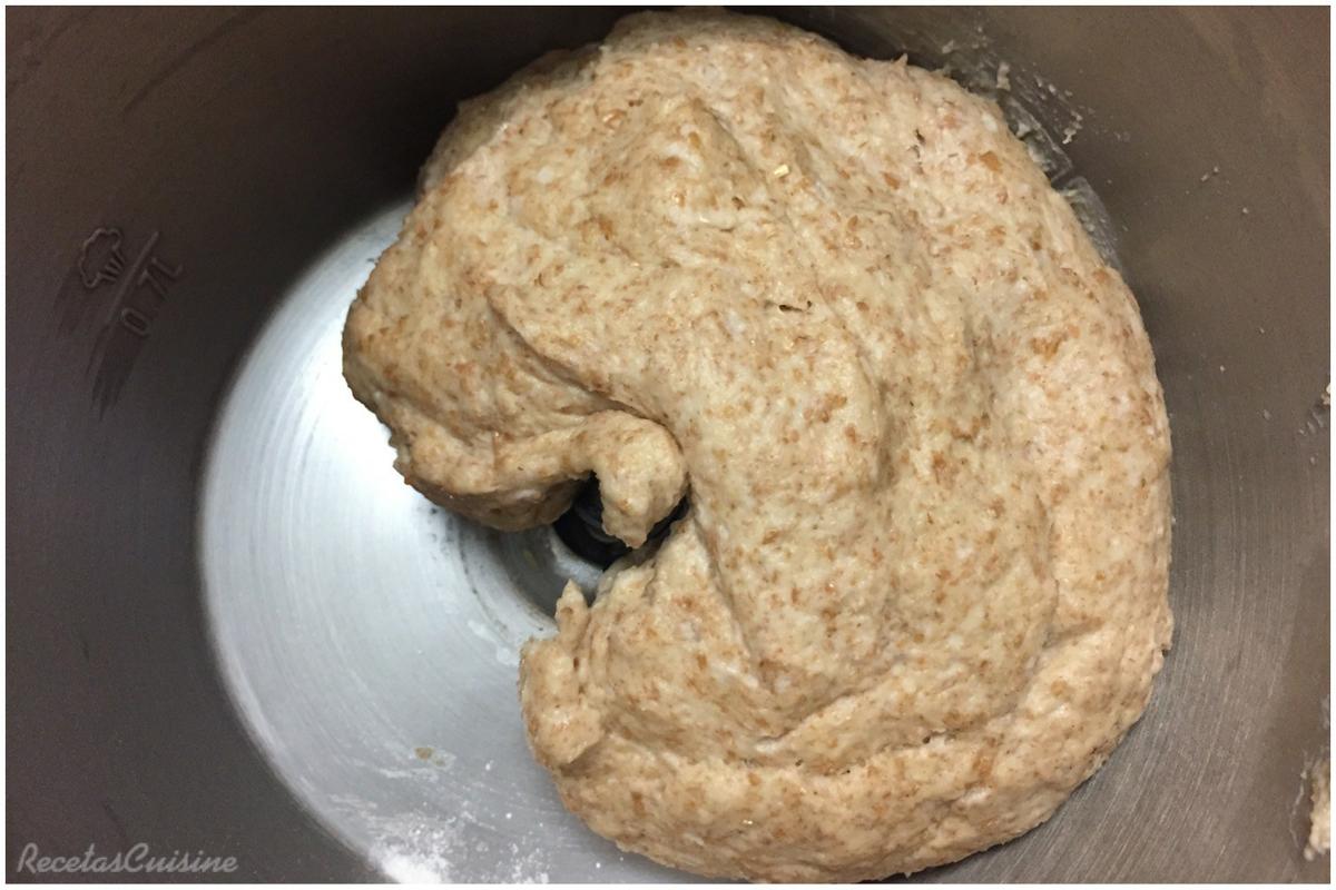 3. Añadimos las harinas y la sal y programamos pastry P1. Sólo el tiempo del amasado, sin dejar levar.