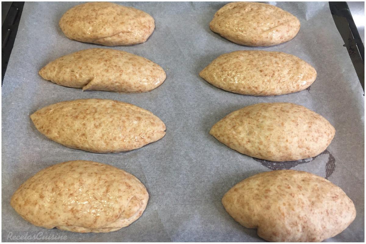 11. Pintamos los panecillos con un poquito de aceite de oliva. Lo haremos cuidadosamente para que no se nos bajen. Cuando el horno esté caliente, los metemos.
