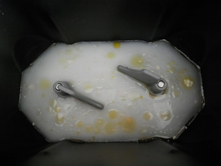 Saca la cubeta de la panificadora y pon los ingredientes en este orden.