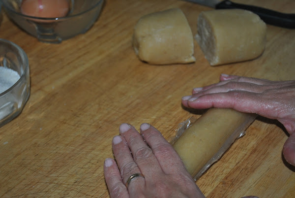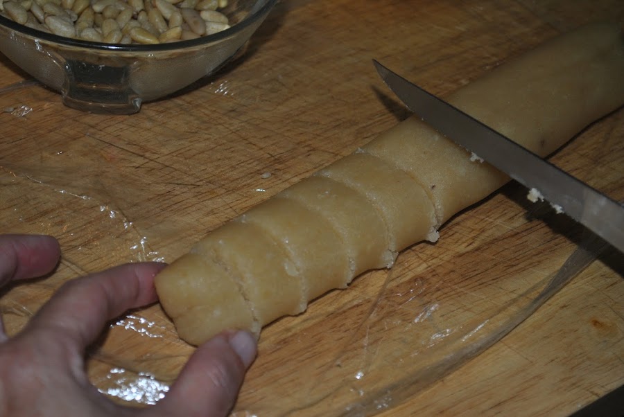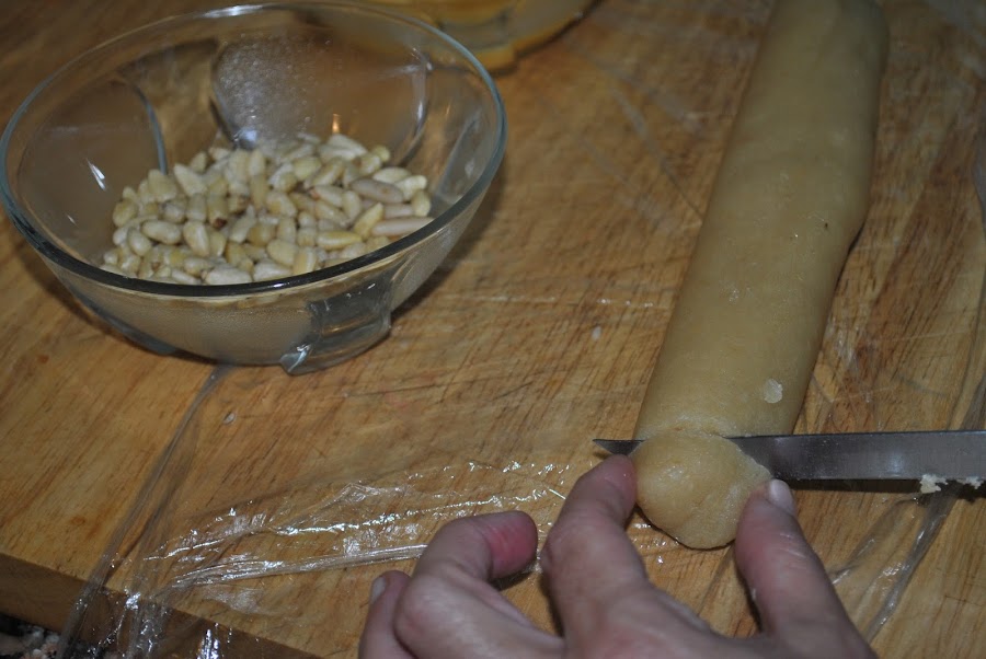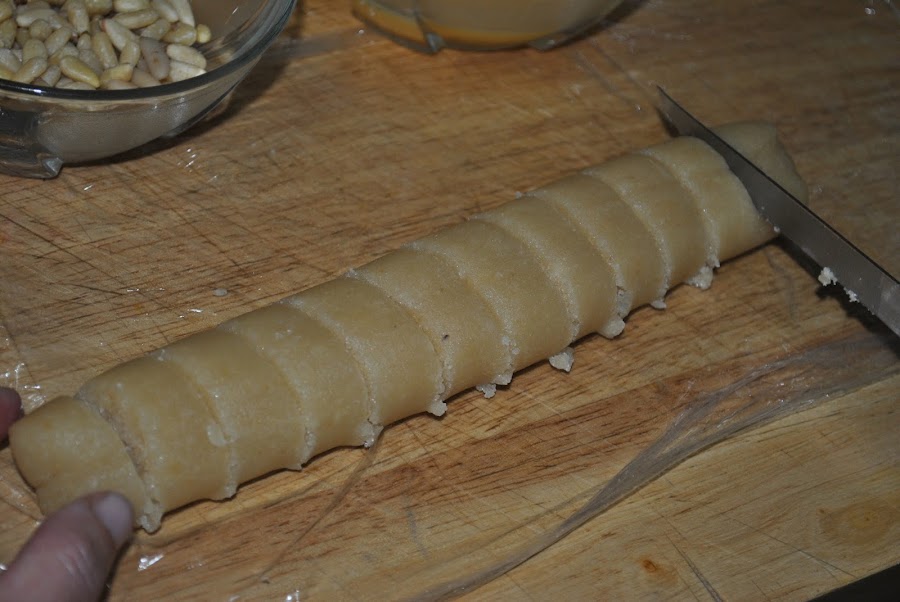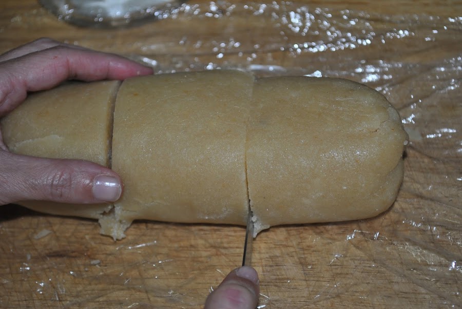 Y cortamos pequeñas porciones para que los panellets nos salgan todos aproximadamente del mismo tamaño.