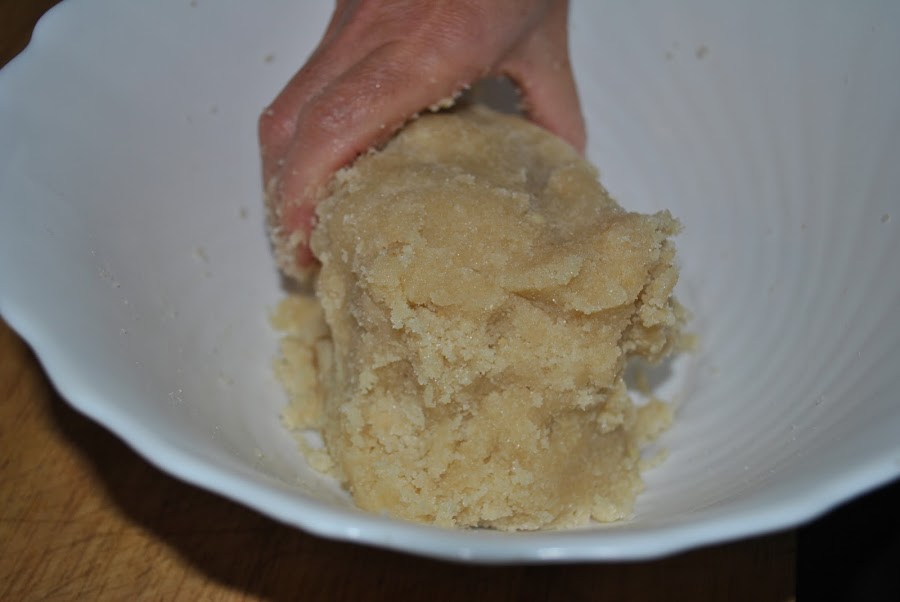 Mezclamos ambas a cantidades iguales. Yo a la masa de mazapán no le pongo huevo para que me dure unos días y no se me estropee, además haré un poco más y la congelaré para hacer figuritas de mazapán en Navidad.