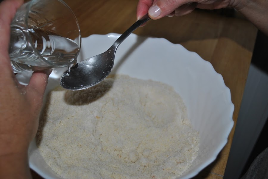 NO echéis mucha, lo justo para que nos ayude a hacer la masa. Ir echando cucharadas poco a poco.