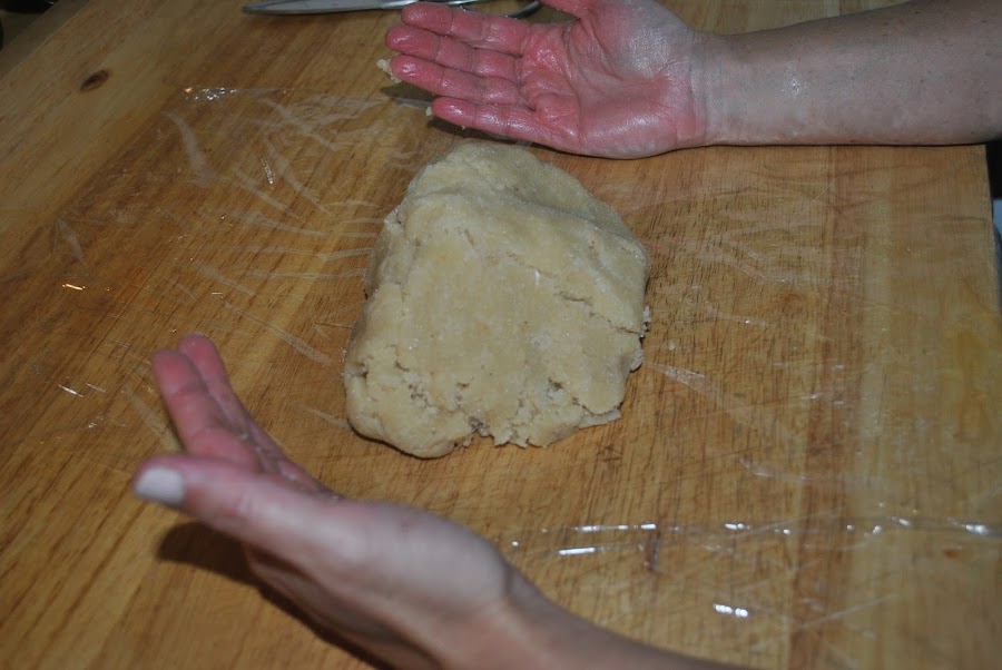 Ahora dividimos la masa en tres partes. 2 las usaremos para los panellets y la tercera la guardaremos envuelta en papel film para nuestras figuritas de Navidad.