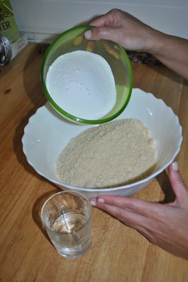 Añado un chorrito de agua que nos ayude a integrar la almendra y el azúcar.