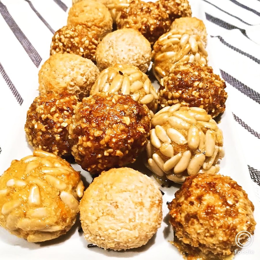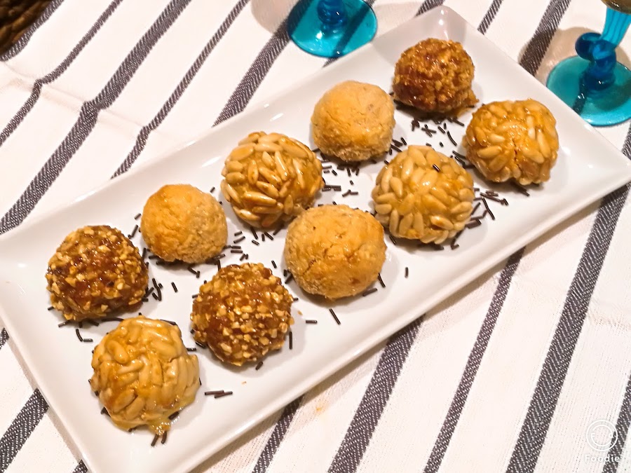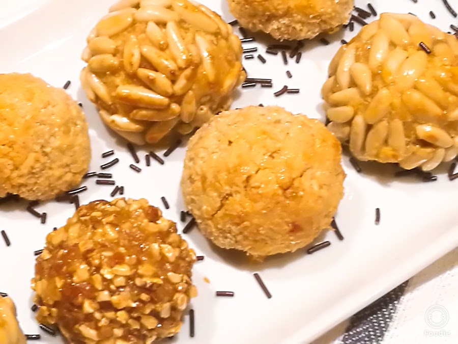 rebozado al gusto: (yo puse piñones, coco rallado y crocanti de almendra)