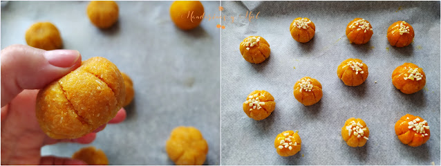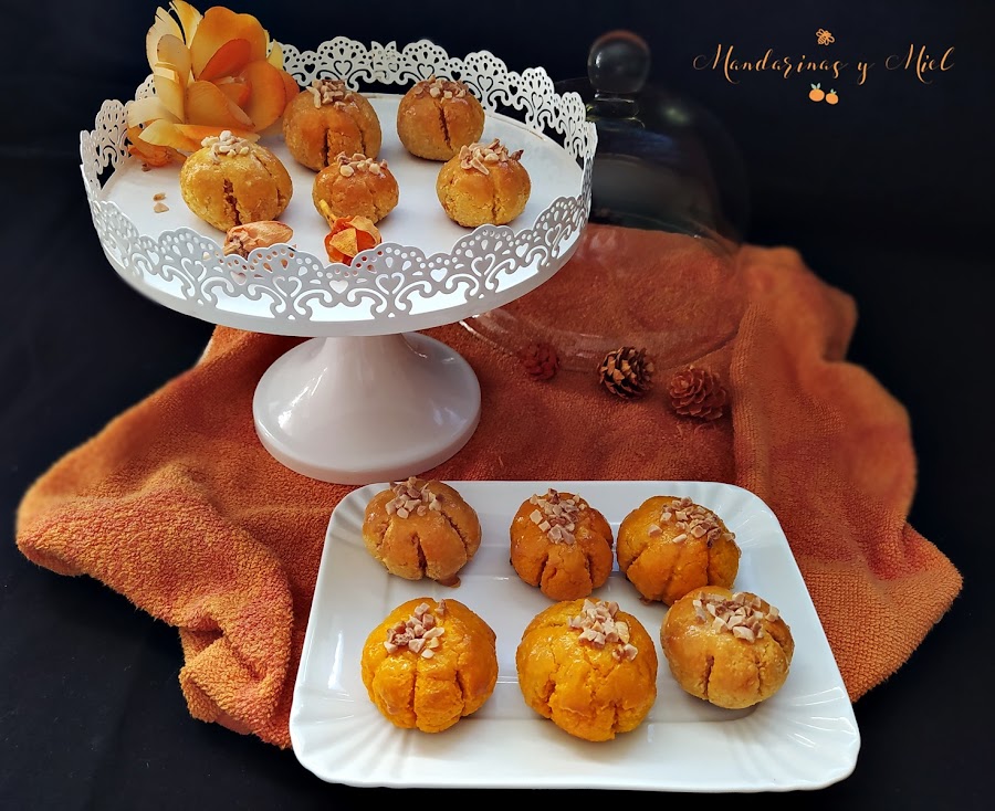 Todo esto ha venido porque este año, además de los típicos panellets de piñones, coco, naranja confitada y alguno que otro más, me he decidido a hacerlos con el ingrediente estrella del otoño, de calabaza!!