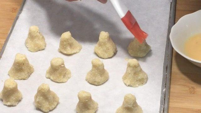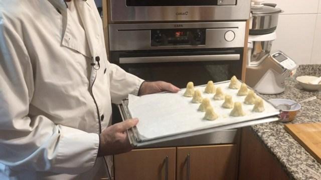 Depositaremos los panellets sobre una bandeja de horno con papel de hornear por encima.
