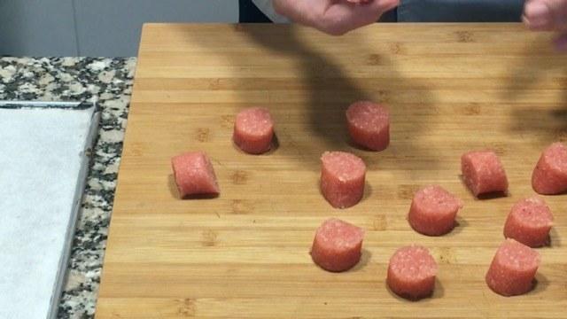 Cortaremos las porciones del mismo tamaño, aproximadamente de unos 23 gramos, no tienen que ser demasiado grandes y les daremos forma de bola