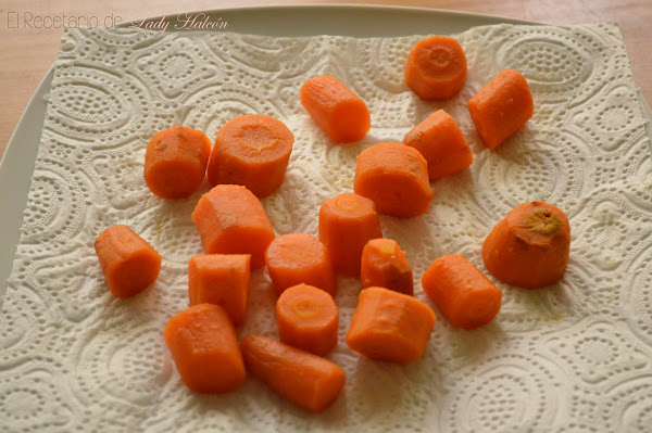 Una vez cocidas escúrrelas y colócalas sobre una servilleta de papel para que absorba el exceso de agua. Puedes colocar otra servilleta encima y aplastarlas un poco para quitarles más humedad. Deja que se enfríen.
