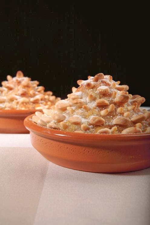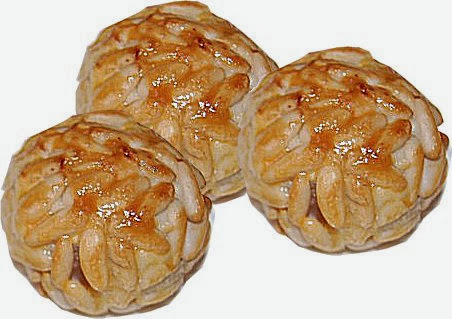 4. Ya tenemos nuestro pequeño ejército de bolitas ahora debemos pensar como decorarlas. El panellet más tradicional es el de piñones. Usaremos las yemas que hemos reservado como pegamento y barniz. Nos mojamos las manos con la yema y cogemos un puñadito de piñones. Vamos apretando para que queden bien pegados sin que pierda la forma de bolita. El mismo método si le pones almendra troceada.