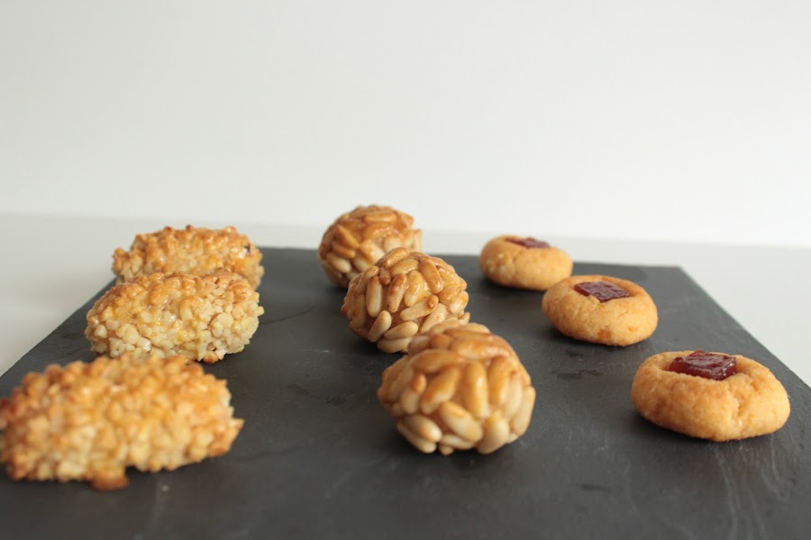 Yo hice los panellets tradicionales y de membrillo, ya que a mi marido le encanta el dulce membrillo y la fruta en sí. Los panellets más vendidos creo que son los de piñones, luego están los de almendras y de otros sabores, como los que nombré con anterioridad, la masa la puedes hacer ya sea con patata o boniato, yo en este caso me decanté por la segunda opción.
