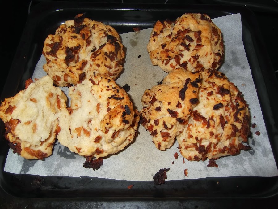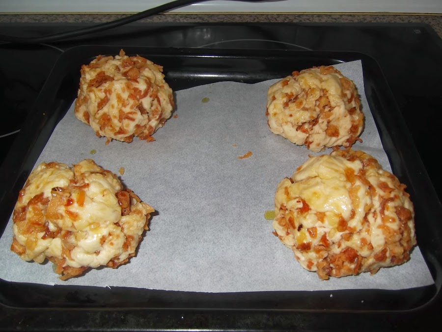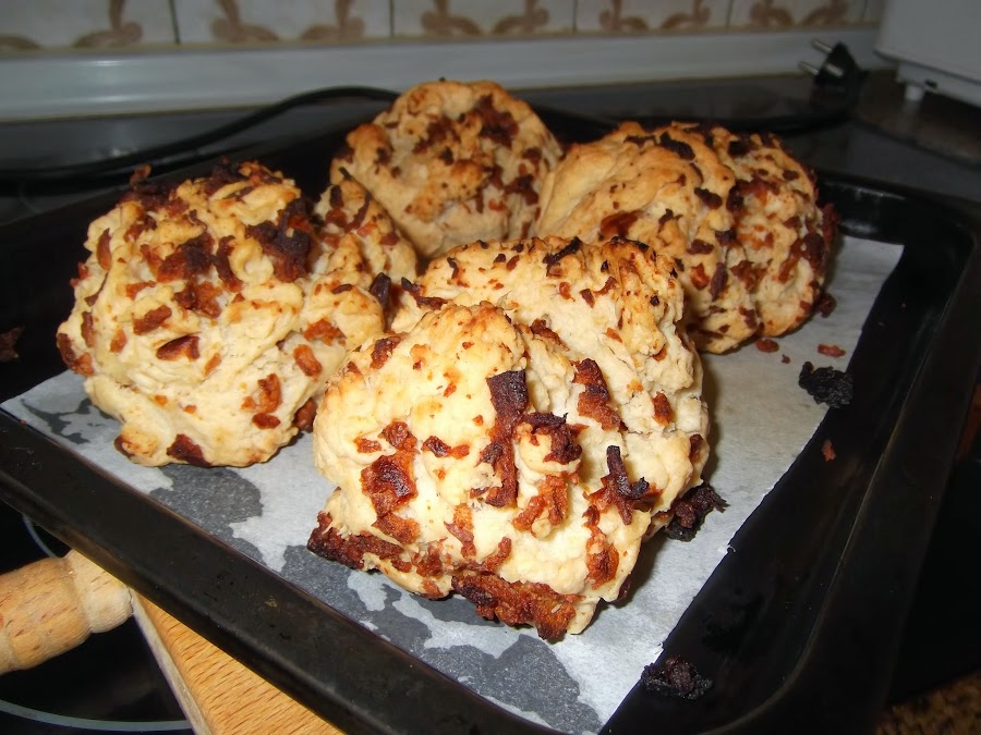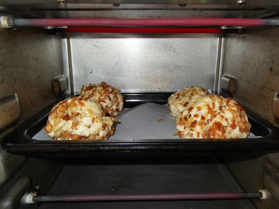Metéis la bandeja al horno y dejáis los bollos 40 minutos, no os preocupéis si la cebolla cambia de color y se pone oscura, ya que está buena de todas las maneras, pero no podéis sacar el pan antes, porque si no se os puede quedar un poco crudo por dentro. Espero que os haya gustado y haré más tipos de pan para aquellos a los que les gusta este alimento.
