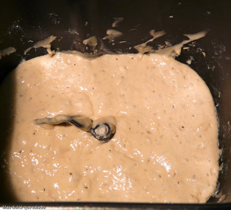 Lo he hecho con la panificadora y la verdad es que es muy cómodo de hacer y muy sencillo. La receta la vi en el blog de Eva, Ma Petite Boulangerie, un blog que me gusta mucho y que consulto con mucha frecuencia. La receta es practicamente igual que la de Eva,solo he cambiado la cantidad de algún ingrediente, el resto es igual.