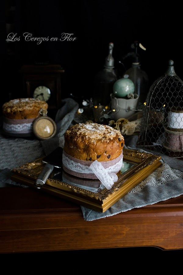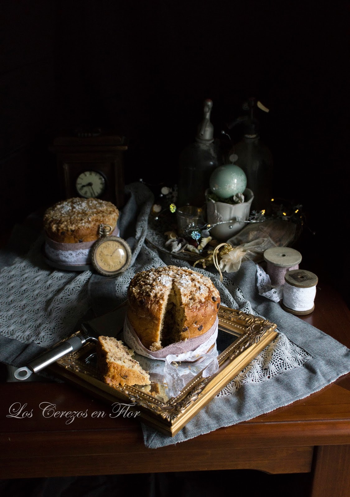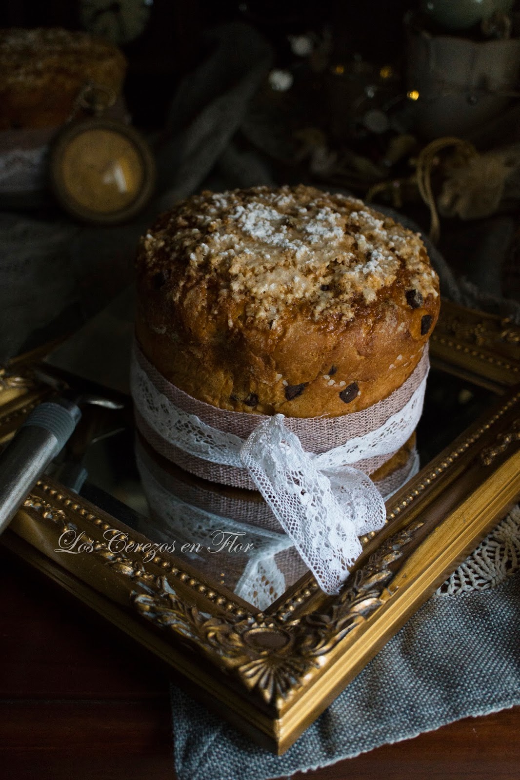 Llevo días pensando que no admiro a ningún chef, me gustan muchos, me inspiran, me ofrecen infinidad de ideas, aclaran conceptos pero tanto como para idolatrarlos y que me influyan en mi modo de actuar como que no. Sin embargo sí que hay personas que se merecen mi mayor admiración, por poner un ejemplo me refiero a centenares de médicos que hacen lo imposible y más por salvar a gente desconocida, que aprovechan sus vacaciones para irse de voluntarios a cualquier zona deprimida en condiciones infra humanas y de modo altruista... también admiro y adoro a mis padres y abuelos por todo lo que me han dado y enseñado... a ciertos amigos que superan mil y una dificultades y encima siempre tienen unas palabras de aliento y cariño para sacarte una sonrisa cuando debería ser al contrario.... a todas esas personas que de manera solidaria ofrecen sus horas libres para hacer de voluntarios en hospitales, residencias o centros sociales para cocinar, limpiar o simplemente charlar con personas que se encuentran completamente solas en éste mundo. Para todos ellos vaya mi receta de Panettone de chocolate. Y habéis leído bien, es mi receta porque después de un intenso estudio por internet he hecho lo que me ha dado la gana y he mezclado tres recetas para obtener éste postre tan navideño y tan delicioso. Cuando Aisha y Abril propusieron para el reto de Cooking the Chef de éste mes al chef Torreblanca para inspirarnos y realizar alguna de sus recetas, me vino a la mente de manera inmediata un episodio de la magnífica serie de " Un país para comérselo" presentado por los geniales Echanove e Imanol Arias donde visitaban el obrador del prestigioso Torreblanca . Recuerdo perfectamente esos estantes llenos hasta la bandera de panettones que tenían una pinta increíble y cómo les hincaba el diente Juan poniendo una cara de gusto que daba un poco de envidia cochina jajajaja. Hice un primer intento por si el gran cocinero hubiera publicado por algún despiste la receta de su panettone, pero mi búsqueda fue infructuosa así que pensé que lo mejor sería crear uno a la medida de los gustos de mi familia. Doblando los ingredientes he conseguido cuatro panes dulces, dos rellenos de chips de chocolate y otros dos con el tradicional relleno de frutas escarchadas y frutos secos. Ahora, para mí lo mejor es el descubrimiento de cómo hacer esa capa crujiente y deliciosa que caracteriza a los panettones, es tan simple como mezclar unas claras de huevo con almendra y avellanas molidas junto con azúcar y harina de maíz refinada, el resultado es de profesional, brutal!!