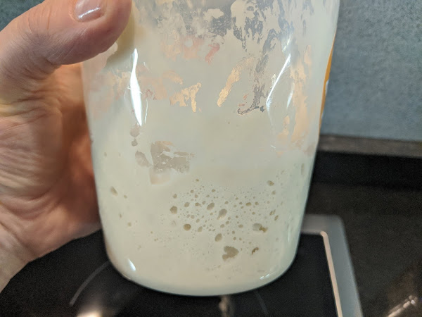 Ahora en invierno dejo mi masa madre a temperatura ambiente, en la encimera de la cocina, y la refresco una vez al día.