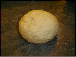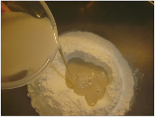 En primer lugar disolvemos la levadura en el agua templada. La vertemos en el bol con la harina ya preparada con forma de volcán. Amasamos lo suficiente hasta que se integren los ingredientes, no más.