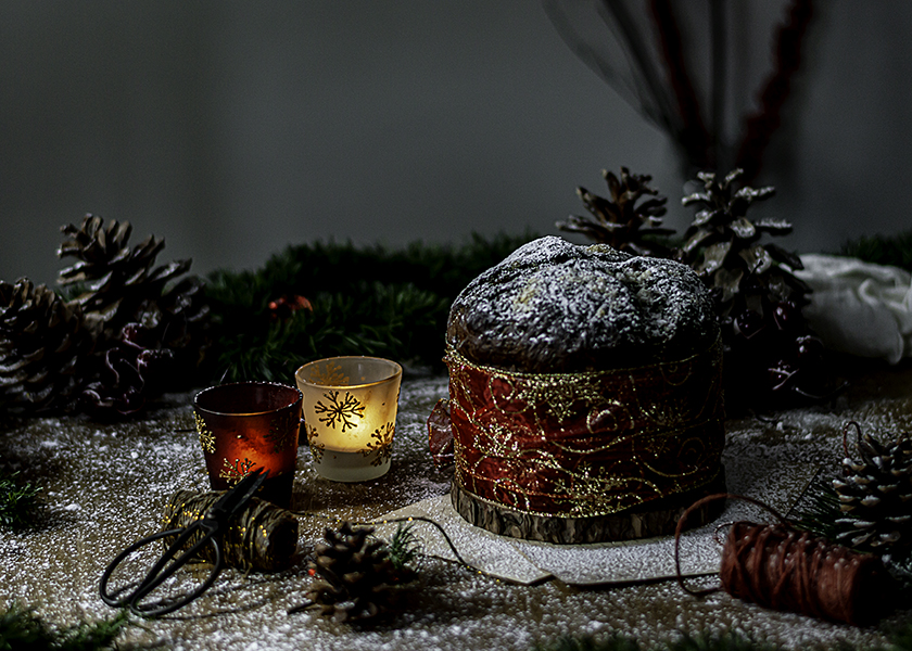 El Panettone es un bollo hecho con una masa tipo brioche, relleno con pasas, frutas confitadas y en ocasiones pepitas de chocolate. Tiene forma de cúpula y la masa se elabora con harina de fuerza, masa madre, levadura fresca o seca de panadero, huevos, mantequilla y azúcar.