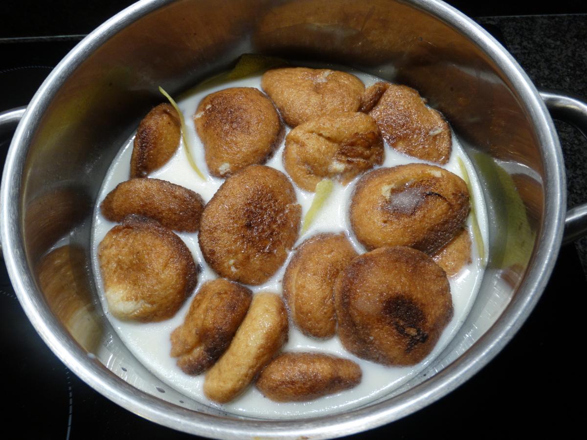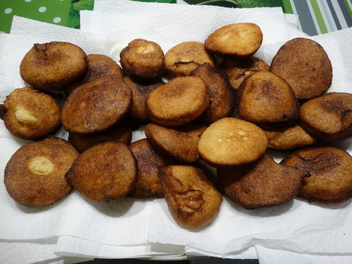 Cuando la masa está lista, calentamos el aceite en una sartén y vamos echando cucharadas de la misma para formar los panezuelos. Se fríen rápidamente, así que conviene estar atentos para darles la vuelta y freírlos por ambos lados sin que se nos quemen. En mi caso, menos mal que tenía la ayuda de mi hijo Andrés para hacer la foto, que si no… imposible atender cámara y sartén a un tiempo! Los vamos escurriendo sobre papel de cocina para que absorba el exceso de aceite.