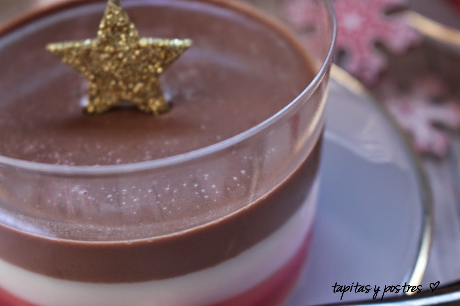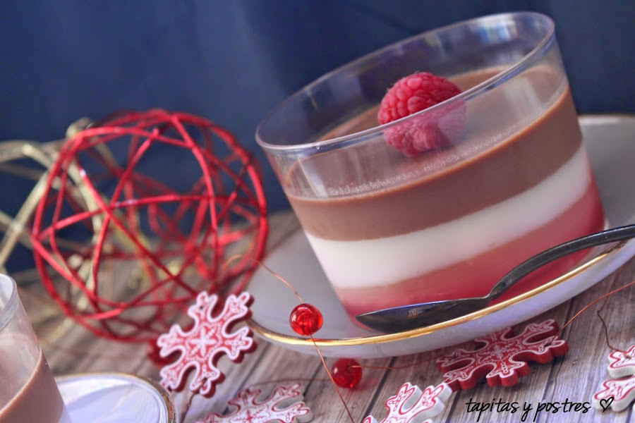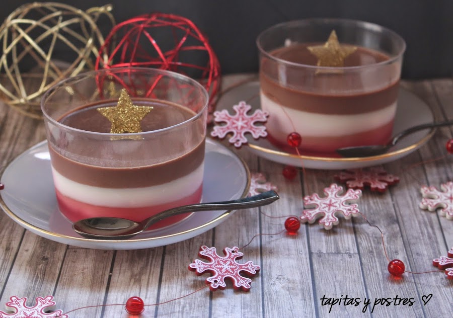 He elegido una panna cota tricolor que me parece muy atractiva para presentar como postre de una comida o cena navideña y aunque es un postre entretenido por los tiempos de espera entre capa y capa, no es nada complicado de preparar y además se puede hacer el día antes (es lo ideal).
